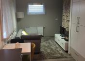 Byt sa nachádza v modernej novostavbe v blízkosti vinohradov na prízemí. Z predsiene je vstup do kúpeľne s wc, kde sa nachádza ja práčka. Kuchynská linka je so stavanými spotrebičmi (umývačky, varná doska, chladničky). Obývacia časť je spojená s kuchynskou. Spacia časť je oddelená stenou. Ideálny ako investičná nehnuteľnosť.