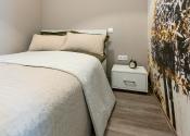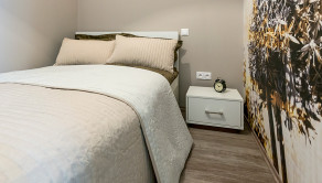 - spací kút s manželskou posteľou , obývacia časť s gaučom a vstavanou skriňou