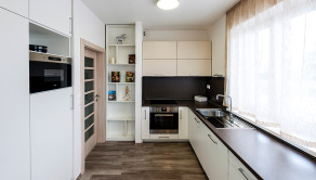 - kuchynská linka vo vysokom bielom lesku vrátane všetkých zabudovaných spotrebičov
