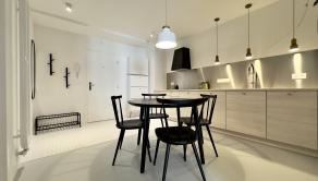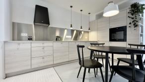 - kuchyňa je vybavená kuchynskou linkou so zabudovanými kvalitnými spotrebičmi vrátane umývačky riadu, okrúhlym jedálenským stolom so stoličkami