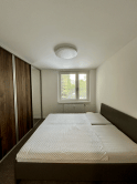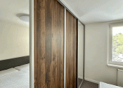 Spálňa: Samostatná miestnosť so vstavanou skriňou, ktorá ponúka dostatok úložného priestoru.