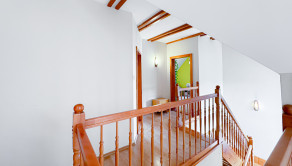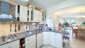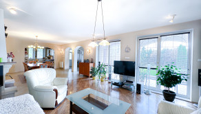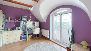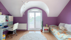 Tento dom ponúka komfortné bývanie pre viacčlennú rodinu – denná časť s obývačkou, krbom, modernou kuchyňou a pracovňou je oddelená od nočnej časti na poschodí, kde sa nachádzajú štyri izby, vrátane hlavnej spálne s výstupom na terasu s výhľadom priamo do záhrady.