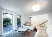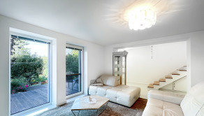 Jedinečný 4-izbový rodinný dom v Senci. Vysoký strop v obývacej miestnosti, predpríprava na krb a obrovské presklenie poskytujú maximum prirodzeného svetla.