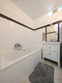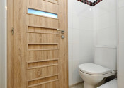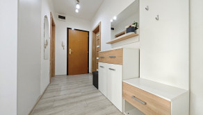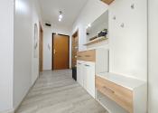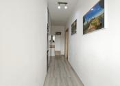 Chodba – dlhá a úzka chodba s vkusným minimalistickým dizajnom. Svetlé podlahy a biele steny opticky zväčšujú priestor. Na stenách sú obrazy, ktoré dotvárajú príjemnú atmosféru. Po pravej strane sa nachádza vstavaná skriňa poskytujúca dostatok úložného priestoru.