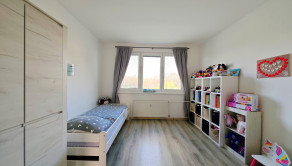 Detská izba – perfektný priestor pre vaše dieťa alebo ako hosťovská izba. Nájdete v nej praktickú posteľ, veľkú skriňu a dostatok úložného priestoru, kde sa zmestia všetky hračky, školské potreby či sezónne oblečenie. Miestnosť je útulná a funkčne zariadená tak, aby poskytovala pohodlie a dostatok priestoru na hranie či učenie.