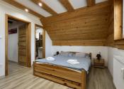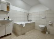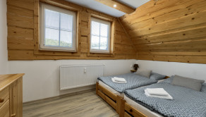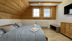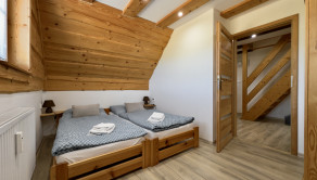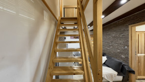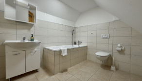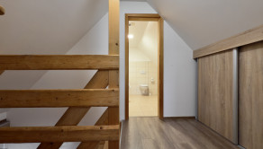 podkrovie– vstup do podkrovia vedie po drevenom schodisku, chodba, spálňa, kúpeľňa s vaňou a WC