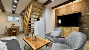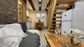Stavba bola kolaudovaná v roku 2018 na pozemku s rozlohou 425 m2, podlahová plocha 66,96 m2, celková plocha 76,06 m2. Mezonet sa nachádza v rekreačnom zariadení, ktoré tvorí 5 apartmánov. Vykurovanie ústredné elektrické, ČOV, mestská voda. Výhodou je parkovanie pred chatou.