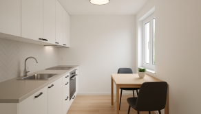 Kuchyňa s oknom, orientovaná na tichú stranu domu.