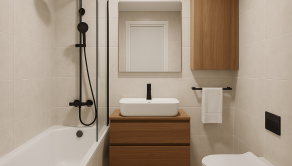 Kúpeľňa s vaňou a oddelené WC.
