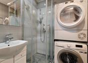 Kúpeľňa – moderná, s vaňou, sprchovým kútom a priestorom pre práčku a sušičku.