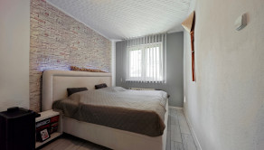 Spálňa – útulná s dostatkom miesta na veľkú posteľ aj úložný priestor.