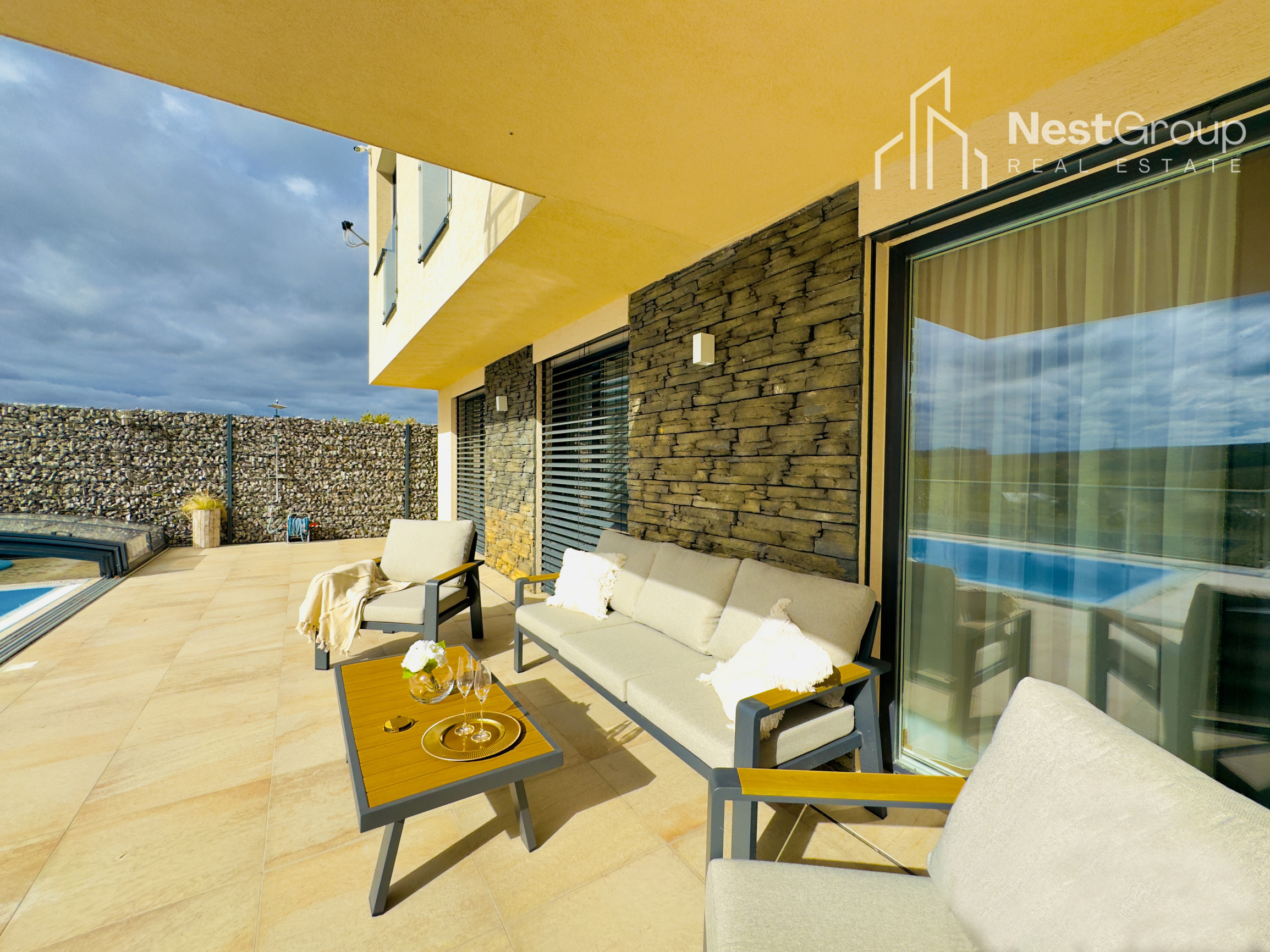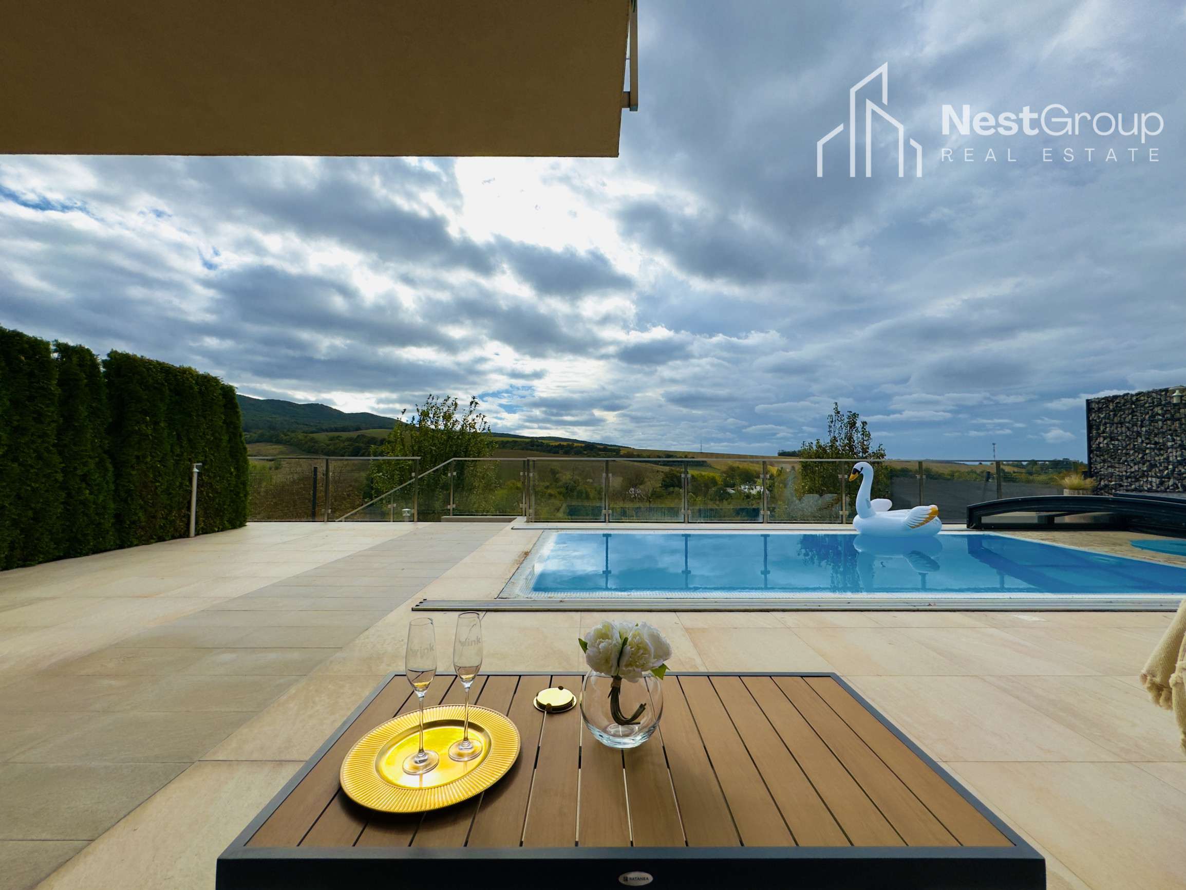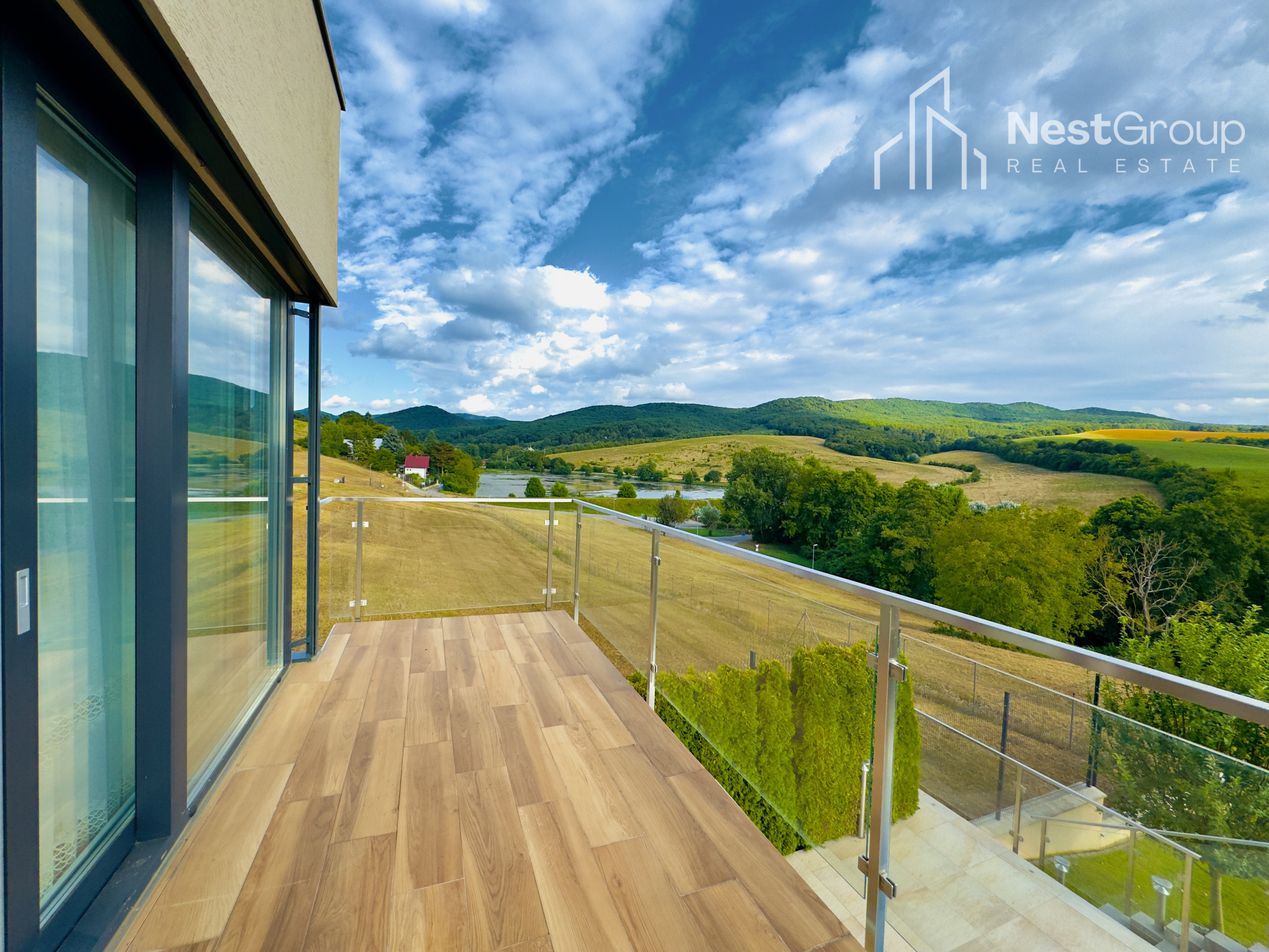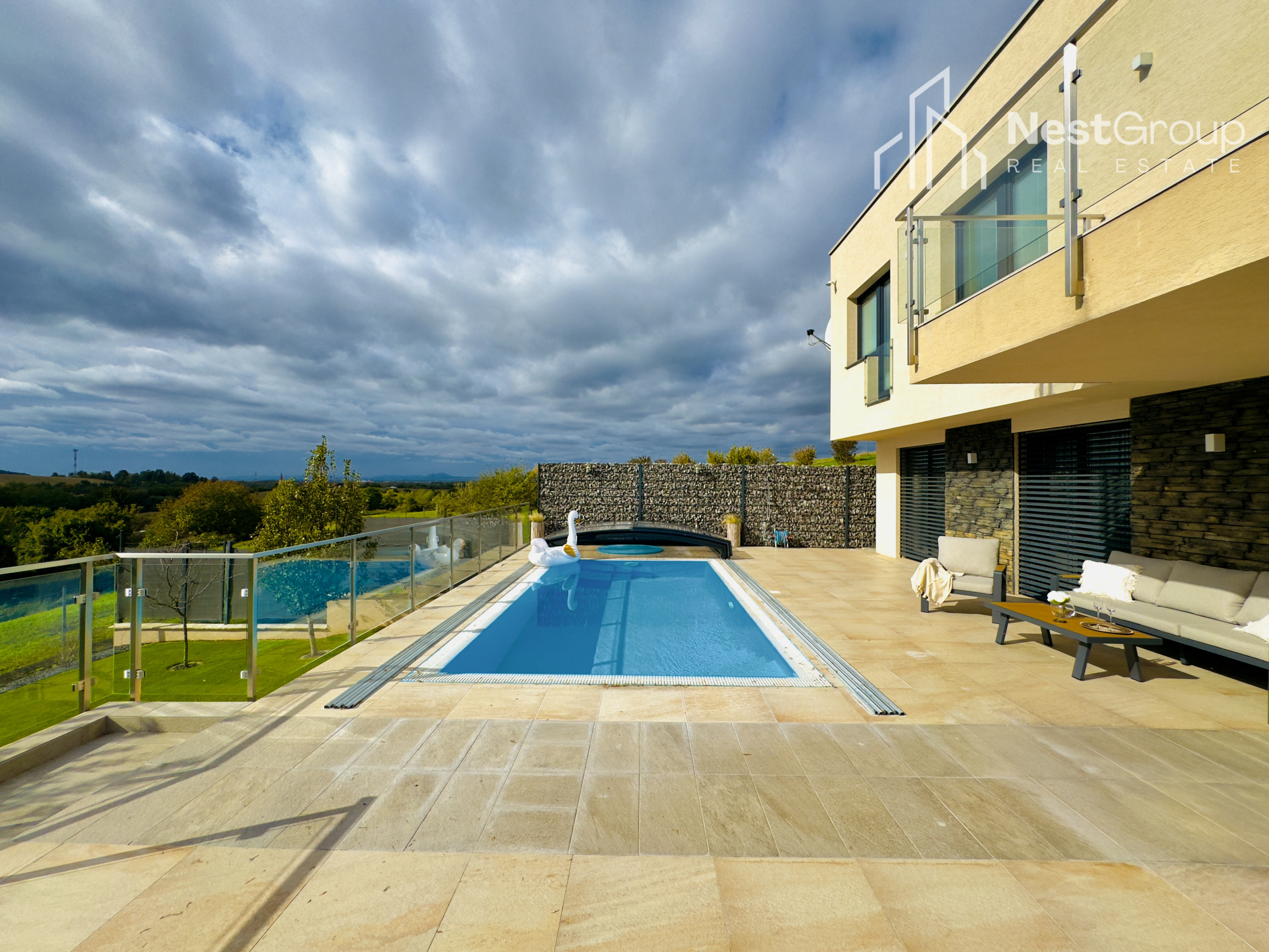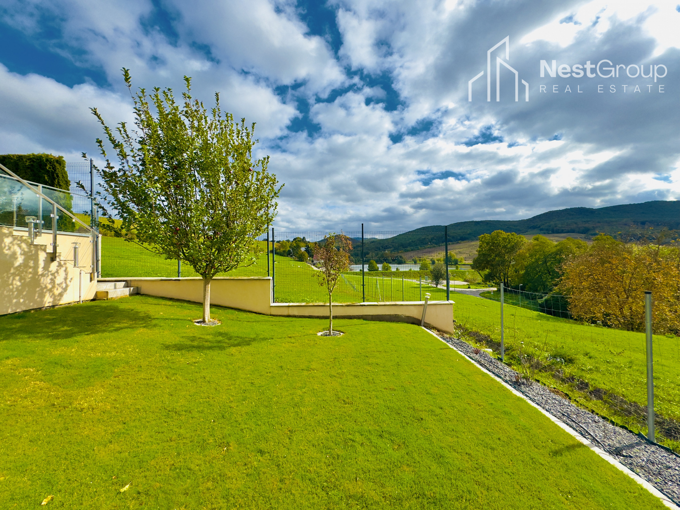 Realitná kancelária NestGroup ponúka EXKLUZÍVNE na predaj moderný nadštandardný rodinný dom s vyhrievaným bazénom, ktorý prináša nádherný výhľad na jazero Striebornica. Ak hľadáte pokoj, komfort a súkromie len na skok od kúpeľného mesta Piešťany, je to pre vás ideálna príležitosť. Jej pridanou hodnotou je vynikajúca investičná príležitosť s rýchlou návratnosťou.