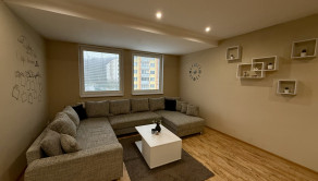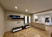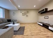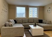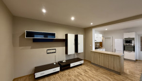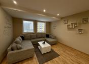 Obývacia izba je priestranná, svetlá a veľmi príjemná, s dostatkom miesta. Vďaka neutrálnym farbám pôsobí vzdušne a ponúka ideálny priestor na oddych aj spoločné chvíle.