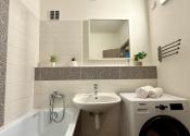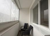 Byt pozostáva z priestrannej obývacej miestnosti spojenej s kuchyňou, spálne, kúpeľne a samostatného WC, priestrannej loggie so zasklením a výhľadom na pešiu zónu s nakupnými možnosťami.