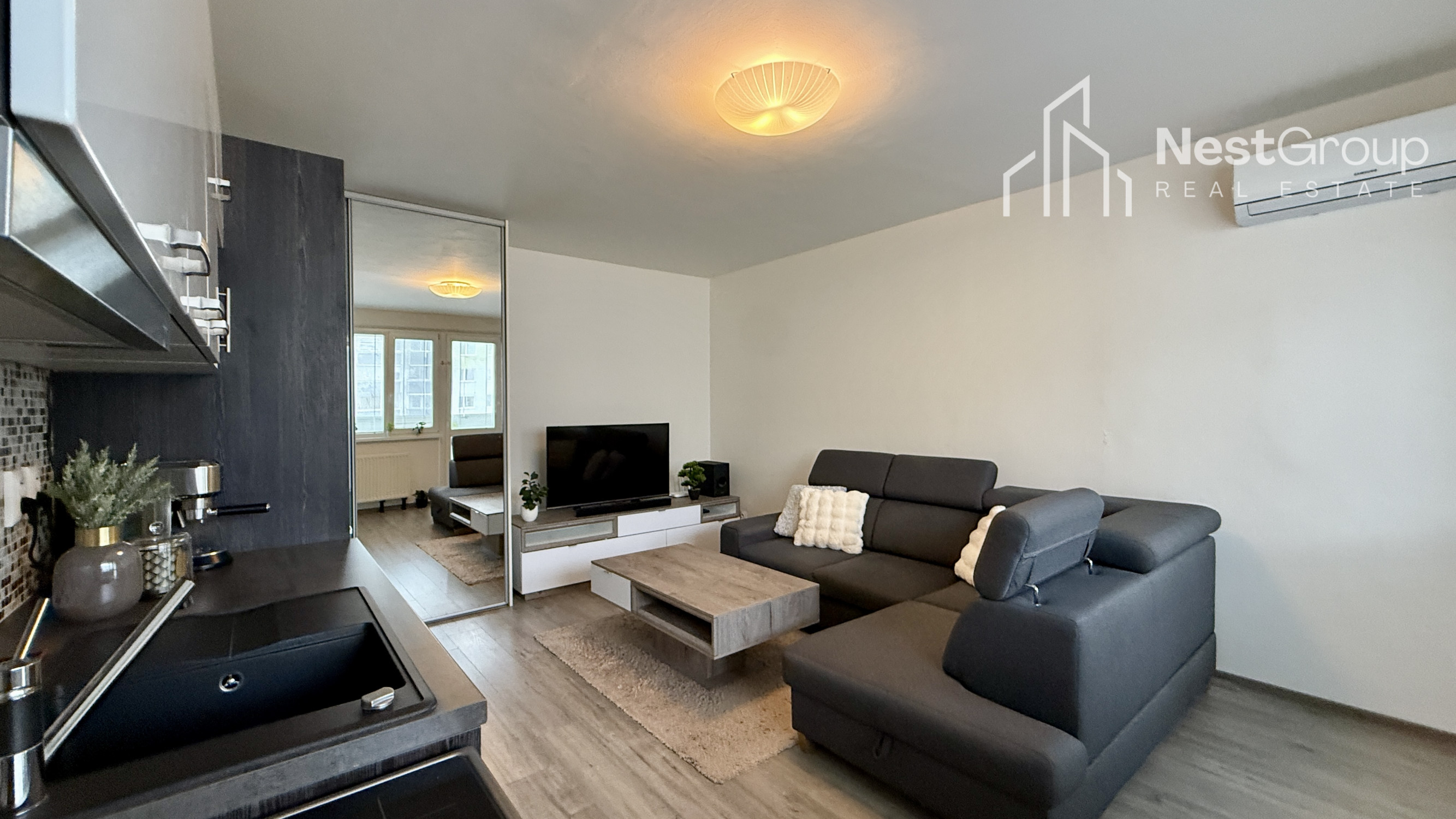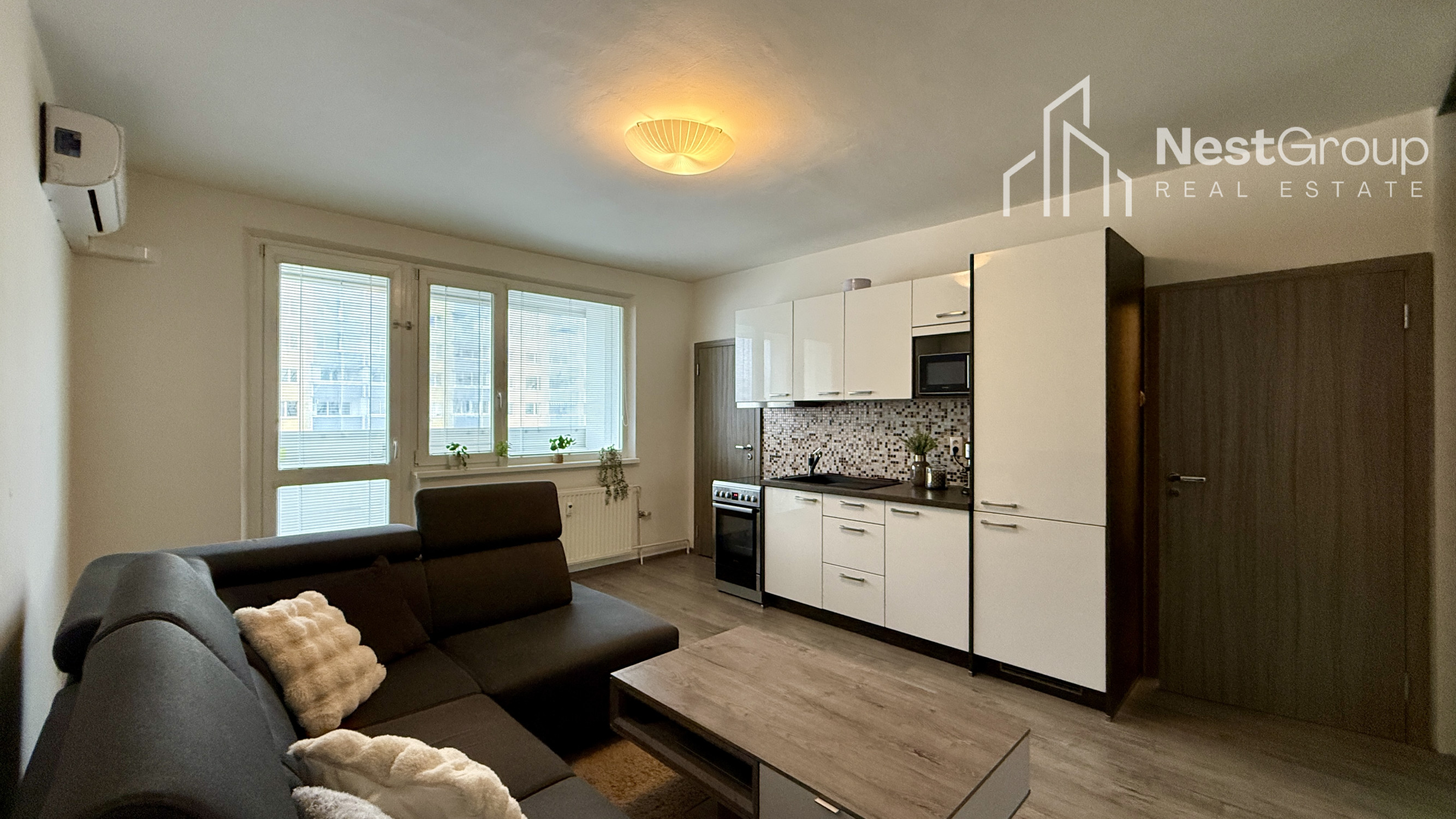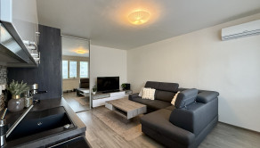 Byt sa predáva kompletne zariadený, kuchyňa so spotrebičmi: elektrická varná doska, elektrická rúra Whirpool, klimatizácia (r. 2025), vnútorné žalúzie, práčka zn. Whirpool v kúpeľni, vykurovanie radiátormi.