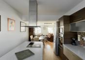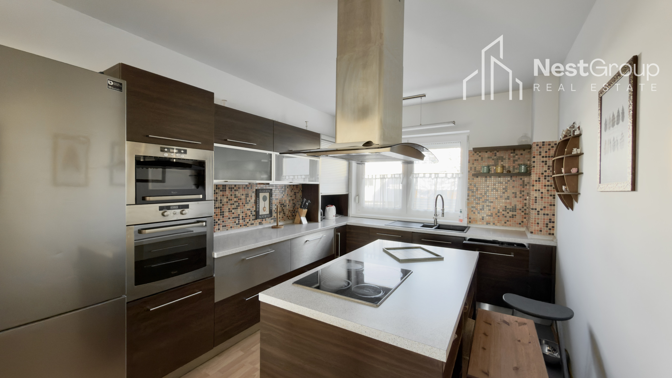 - priestranná kuchynská linka vo vysokej kvalite vrátane všetkých zabudovaných spotrebičov