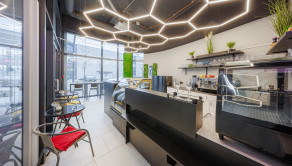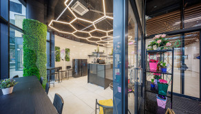 - prízemie, rohová prevádzka s veľkými presklenými oknami
