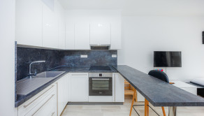 - moderná kuchynská linka s priestorom na jedálenské sedenie