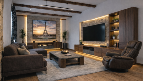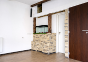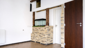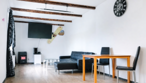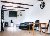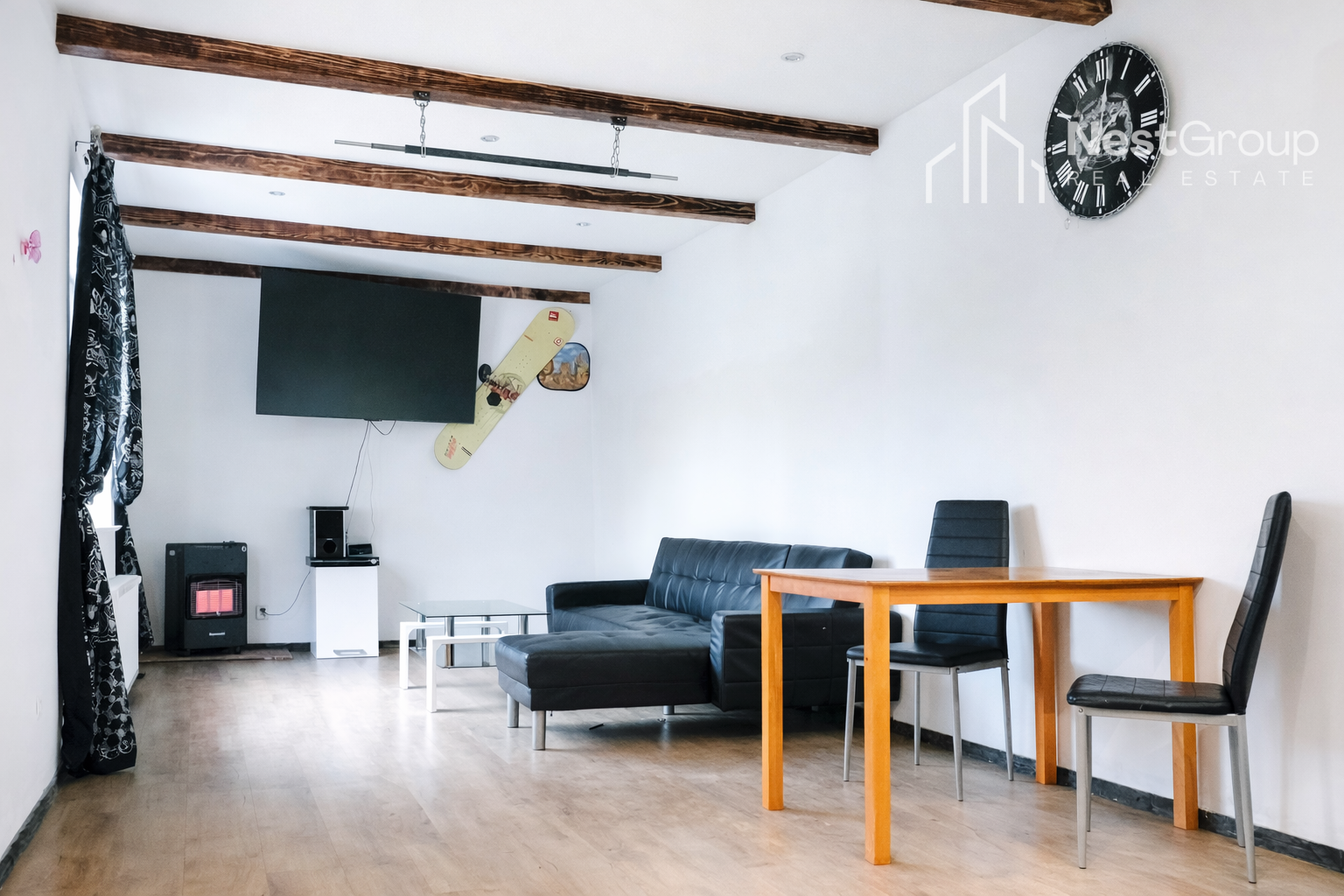 Denná časť je zrekonštruovaná, tvorí ju otvorená kuchyňa, jedáleň, obývacia izba a kúpeľňa.