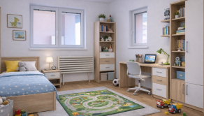 V nočnej časti sa nachádzajú tri izby a šatník, ktorý zabezpečuje dostatok úložného priestoru.