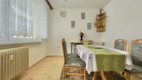 Vstupná chodba, samostatná kuchyňa, priestranná obývacia izba s výstupom na loggiu, tri samostatné izby, kúpeľňa, samostatné WC. K bytu prislúcha pivničná kobka a veľká murovaná pivnica, ktorá môže poslúžiť aj ako dielňa.