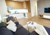 - plne vybavená kuchyňa so vstavanými spotrebičmi elegantne prepojená s jedálenským kútom a obývacou izbou